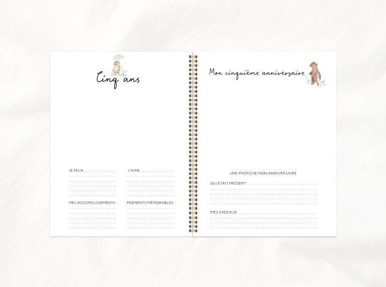 2 pages par années jusqu’à 5 ans